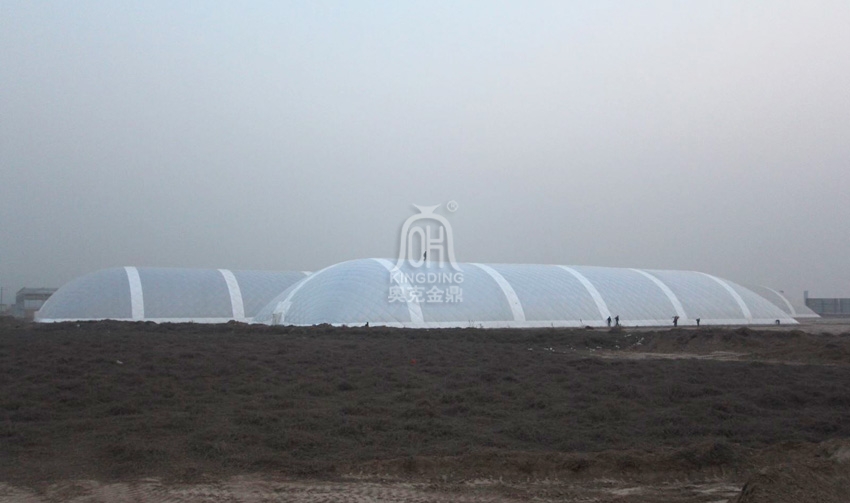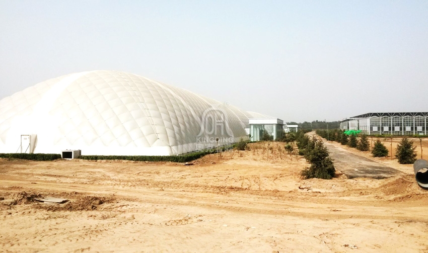 傳統的農業大棚抗風性能和抗雪荷載性能差,充氣膜農業大棚可抗12級風,30-50cm的雪。8級地震,雙層的透明膜材保溫效果好,光照符合農作物生長的透光要求,對農業界產生重大變革。