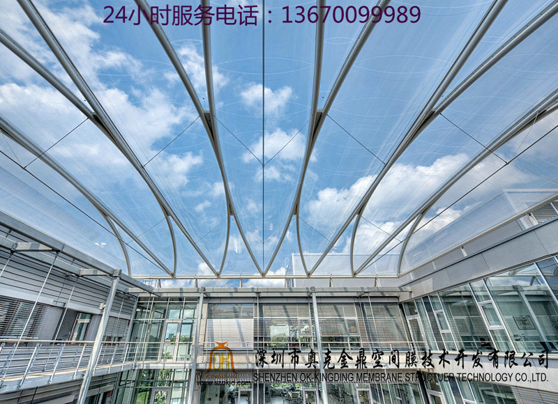 任何帶有天井的公共和商業(yè)建筑都是流行的會議和聚會的場所。考慮到歐洲中部的氣候條件,為了讓這些天井在一年四季都能得到充分利用,需要給它們一個防風(fēng)和防雨的措施。“wollforschungsinstitut”(德國羊毛研究所)在“萊茵- westf?lische Technische Hochschule的亞琛”(威斯特法倫亞琛技術(shù)大學(xué))開始實(shí)施他們的屋頂建筑工程。