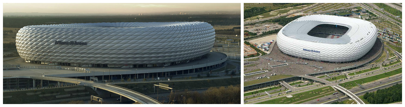 安聯體育場是歐洲最現代化的球場。當拜仁慕尼黑隊主場比賽時,能容納75000名觀眾的體育場將在照明系統的映射下成為一個紅色的發光體,幾英里外都可以看到。由瑞士設計師雅克·赫爾佐格和皮埃爾·繆隆設計。當體育場中比賽的球隊發生變化時,墻的顏色就可以隨之改變,其奇妙之處將遠超想象。