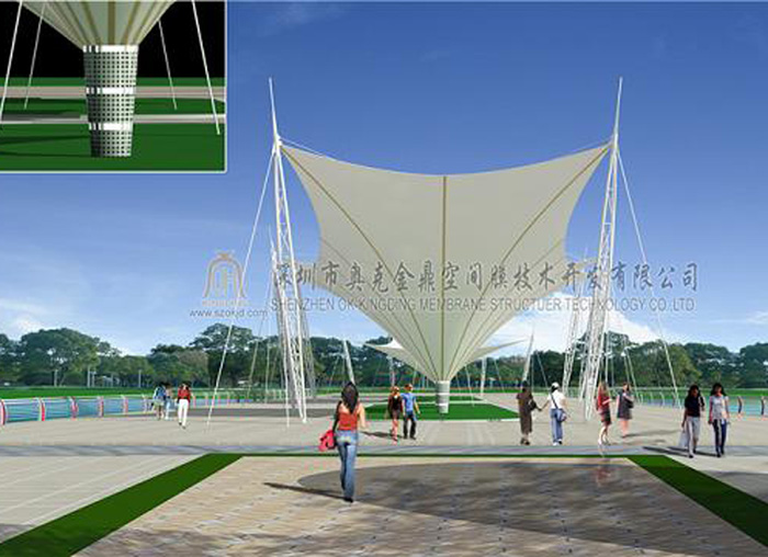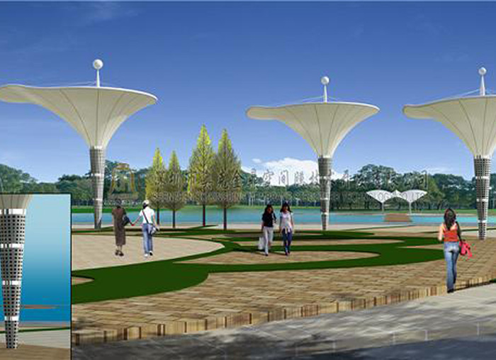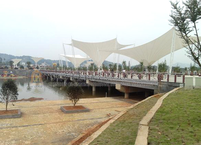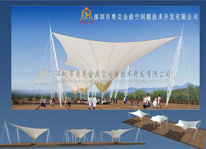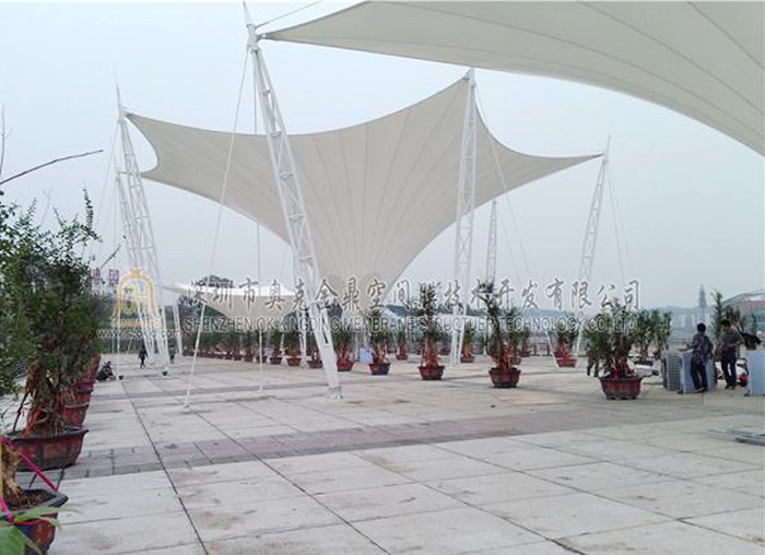 江西宜春花卉博覽園張拉膜項目,交鑰匙工程,展開面積3286平方。膜材料采用平岡COOLMAX312T超強自潔膜材料,原廠提供質量保證15年。