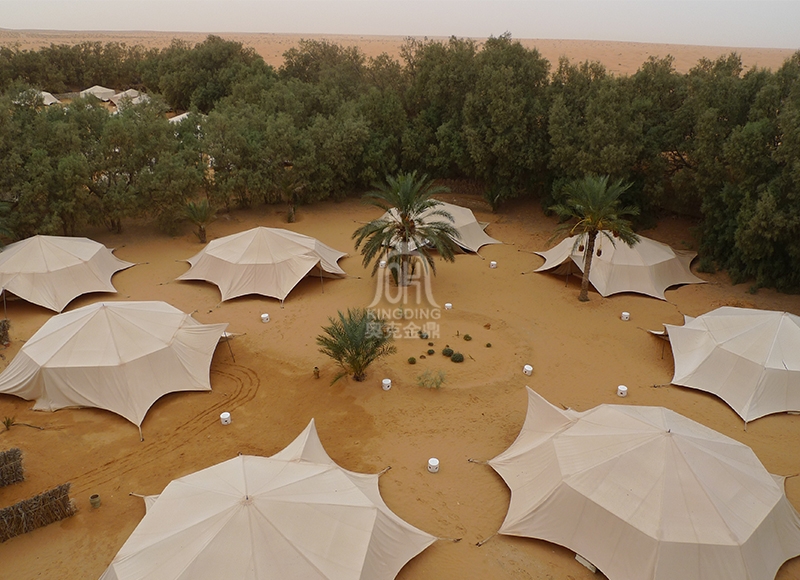 本項目施工完成后是比較大器而壯觀的,由幾十個單品膜結(jié)構(gòu)帳篷酒店整體統(tǒng)一規(guī)劃、布置的要素,富有一點剛度的穩(wěn)定曲面的她,體現(xiàn)了她的文化、設(shè)計理念和內(nèi)涵。膜結(jié)構(gòu)本身飄逸的造型讓客人深入其中時感覺她的人文、地理,仿佛進入似成相識的夢境,離開時回味她的魅力與莊嚴(yán)。